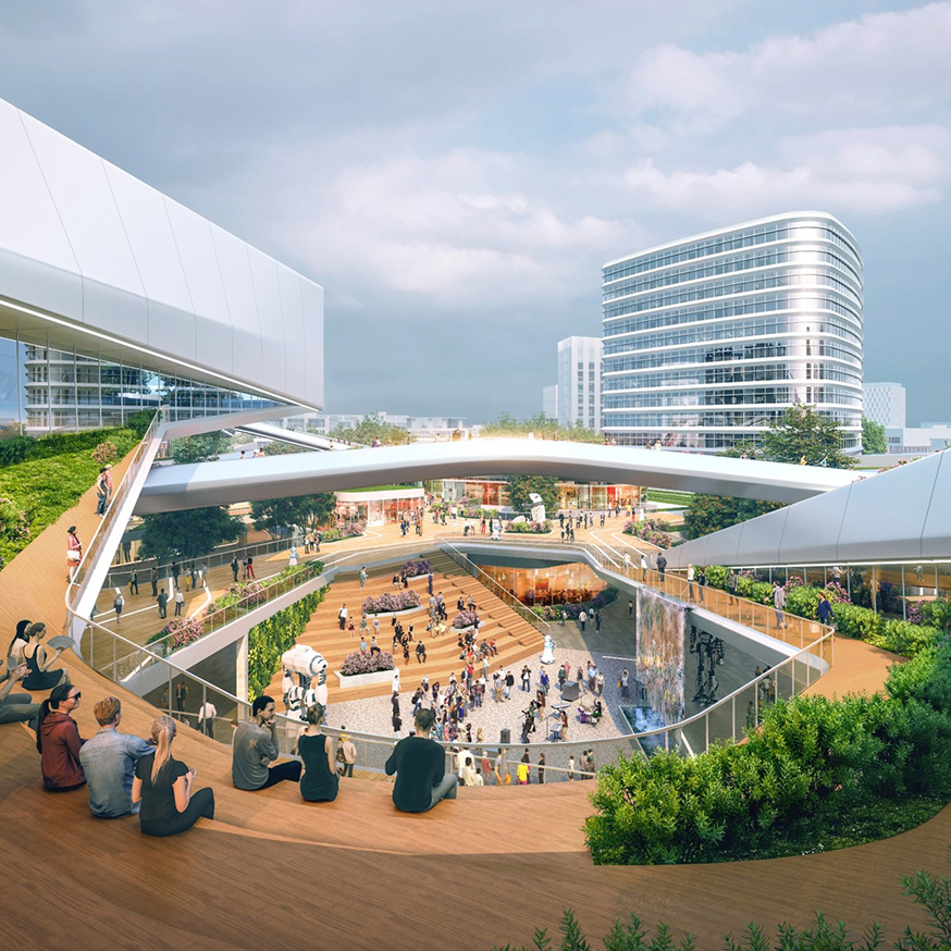 Cendes設(shè)計(jì)的是六棟低層獨(dú)棟辦公樓、兩棟高層辦公樓和一個(gè)酒店及配套商業(yè)。通過(guò)空間尺度及色彩細(xì)節(jié)的處理,我們的設(shè)計(jì)優(yōu)化